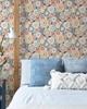 vivid orange, grey and light turquoise flowers blossom against a navy background in this nature inspired design. Its retro hip flair is perfect for creating an eclectic look. Lucy is an unpasted, non woven wallpaper.