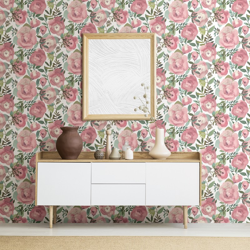 | Darling pink roses with curling green leaves pop against a crisp white background in this sweet wallpaper. Its gorgeous watercolor design emphasizes its whimsical and vintage style. Orla is an unpasted, non woven wallpaper. Brand: A-Street Prints Match: Drop Double Roll Coverage: About 56.4 square feet Paste: Unpasted Strippable Kids Flowers Botanical Flower Wallpaper |