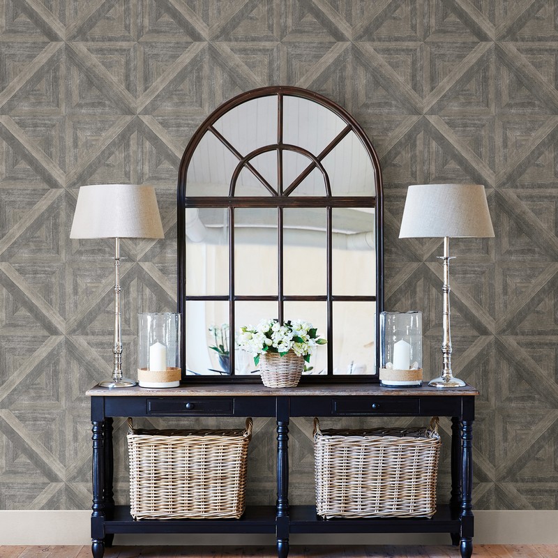 Brewster Wallcovering Carriage House Taupe Geometric Wood Wallpaper