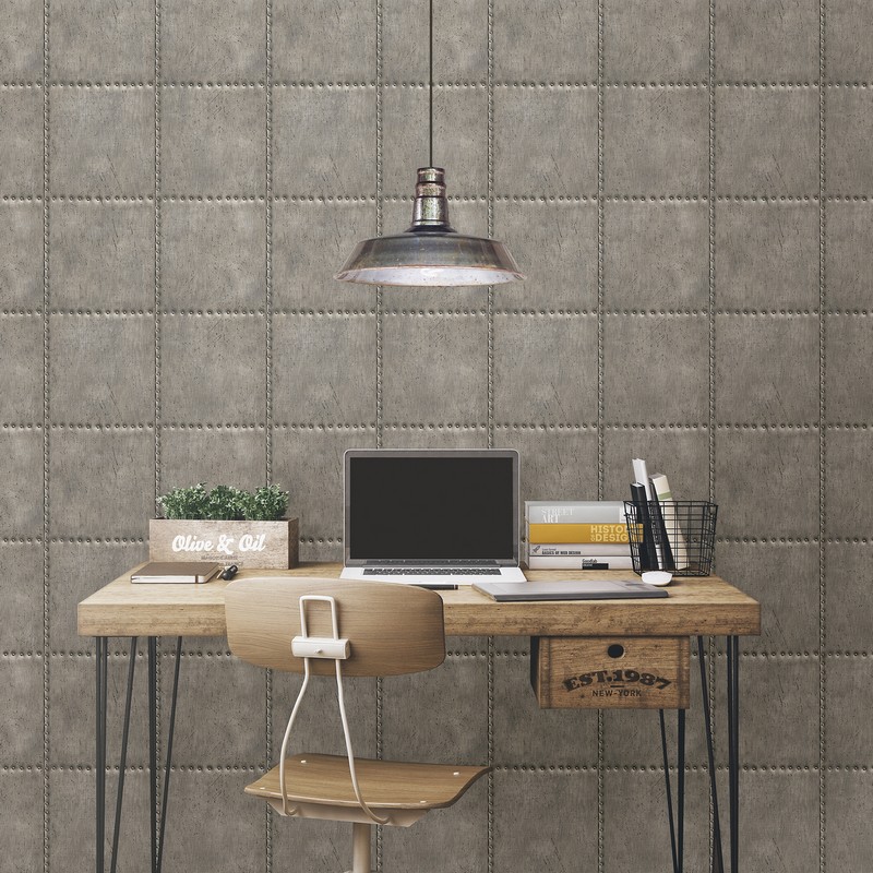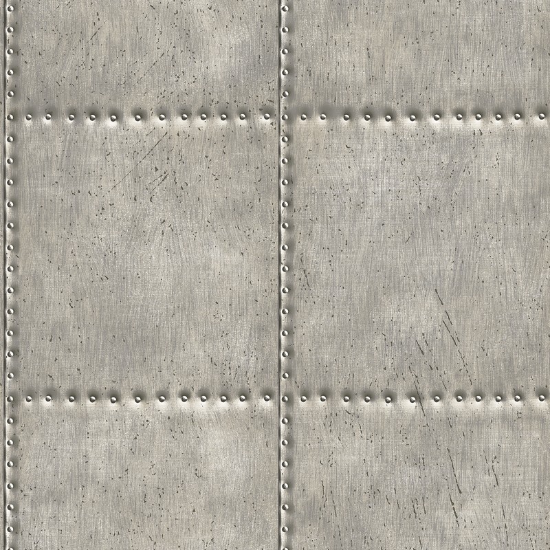 | Perfect for creating an industrial hip look, this wallpaper is made to resemble sheet metal. Riveted accents add a dimensional touch to its brushed silver design. Hale is an unpasted, non woven wallpaper. Brand: A-Street Prints Match: Straight Double Roll Coverage: About 56.4 square feet Paste: Unpasted Strippable Industrial Distressed Textures Graphics |