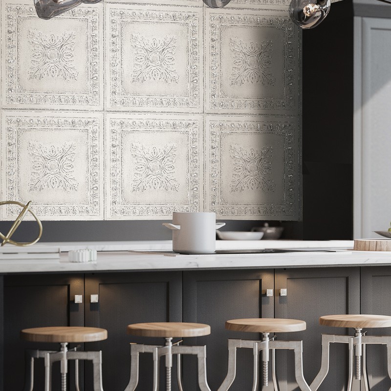 Brewster Wallcovering Hillman White Ornamental Tin Tile Wallpaper