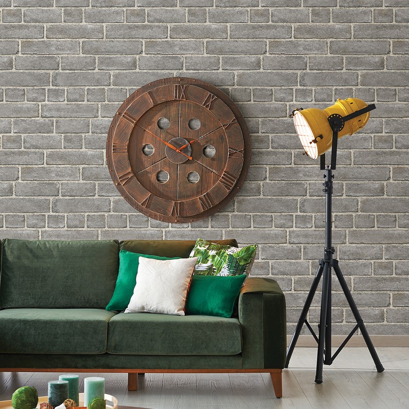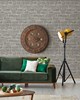Add an industrial flair to rooms with this grey faux brick print. Its extremely detailed design is complete with soft raised inks and weathered accents. Façade is an unpasted, non woven wallpaper.