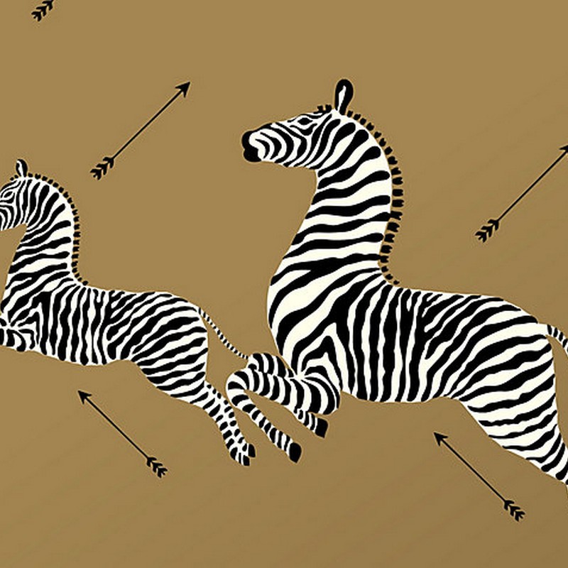 | Scalamandre Zebras Vinyl Wallcovering originally designed for the Gino of Capri restaurant in the 19402 - this playful wallcovering features two prancing Zebras with the classic arrows. This popular wallpaper is now available on vinyl. Some colors require a 10 roll order. Untrimmed with a Straight Match. Spongeable. |