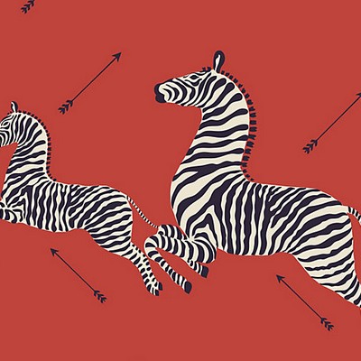 | Scalamandre Zebras Vinyl Wallcovering originally designed for the Gino of Capri restaurant in the 19402 - this playful wallcovering features two prancing Zebras with the classic arrows. This popular wallpaper is now available on vinyl. Some colors require a 10 roll order. Untrimmed with a Straight Match. Spongeable. |