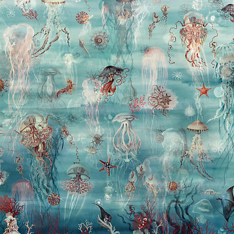| Jean Paul Gaultier Extra Large Aquamarine / Robin's Egg|medium Blue|turquoise / Peacock Wallpaper Match: STRAIGHT FALL-2019 Roll Size: 13.12 sold in increments of 1 Nature Wall Murals Wall Murals |