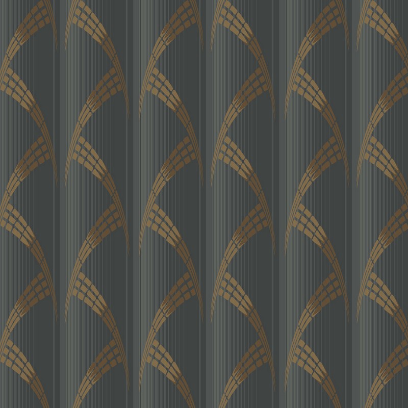 Featuring a mesmerizing vertical pattern, Metropolis Wallpaper consists of multi width stripes and arching window-like cones, suggesting a massive distorted cityscape.