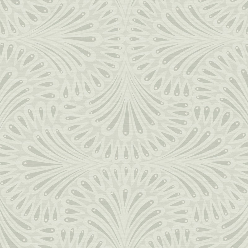 | A graceful curvilinear design, Cabaret Wallpaper is punctuated with metallic dots and features stylized peacock feather fans reminiscent of a 1920s dancer's costume. Unpasted - Washable - Strippable Packaged and sold as a double roll Repeat: 25.25 in. Match: Straight Antonina Vella Deco |