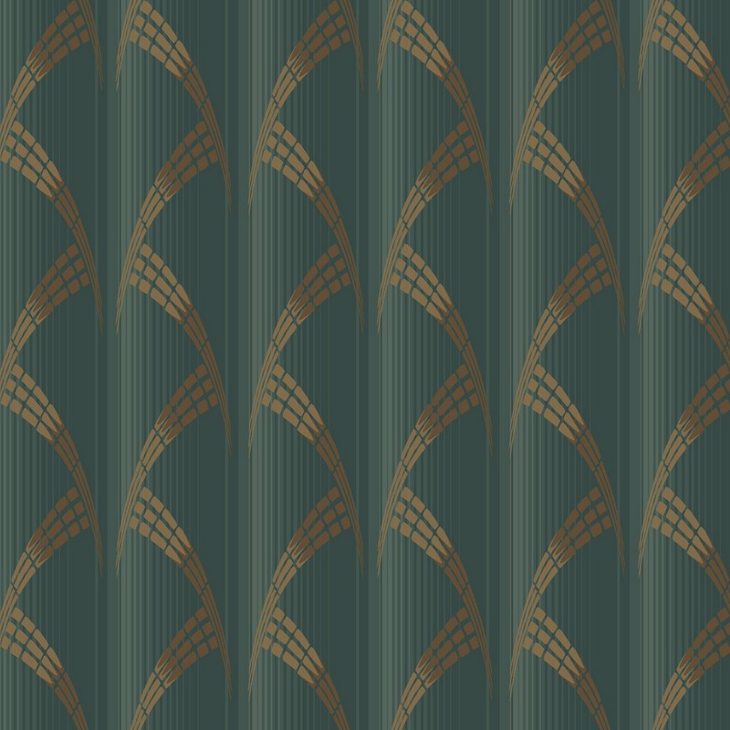 Featuring a mesmerizing vertical pattern, Metropolis Wallpaper consists of multi width stripes and arching window-like cones, suggesting a massive distorted cityscape.