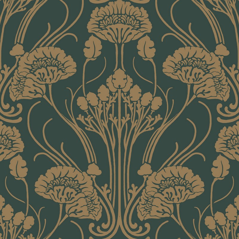 | A gigantic poppy print in sculpted ink manufactured on a vintage press, Nouveau Damask Wallpaper celebrates the zenith of the art nouveau movement and the emerging art deco form. Unpasted - Washable - Strippable Packaged and sold as a double roll Repeat: 25.25 in. Match: Straight Antonina Vella Deco |