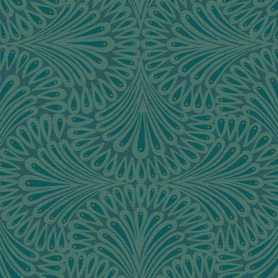 A graceful curvilinear design, Cabaret Wallpaper is punctuated with metallic dots and features stylized peacock feather fans reminiscent of a 1920s dancer's costume.