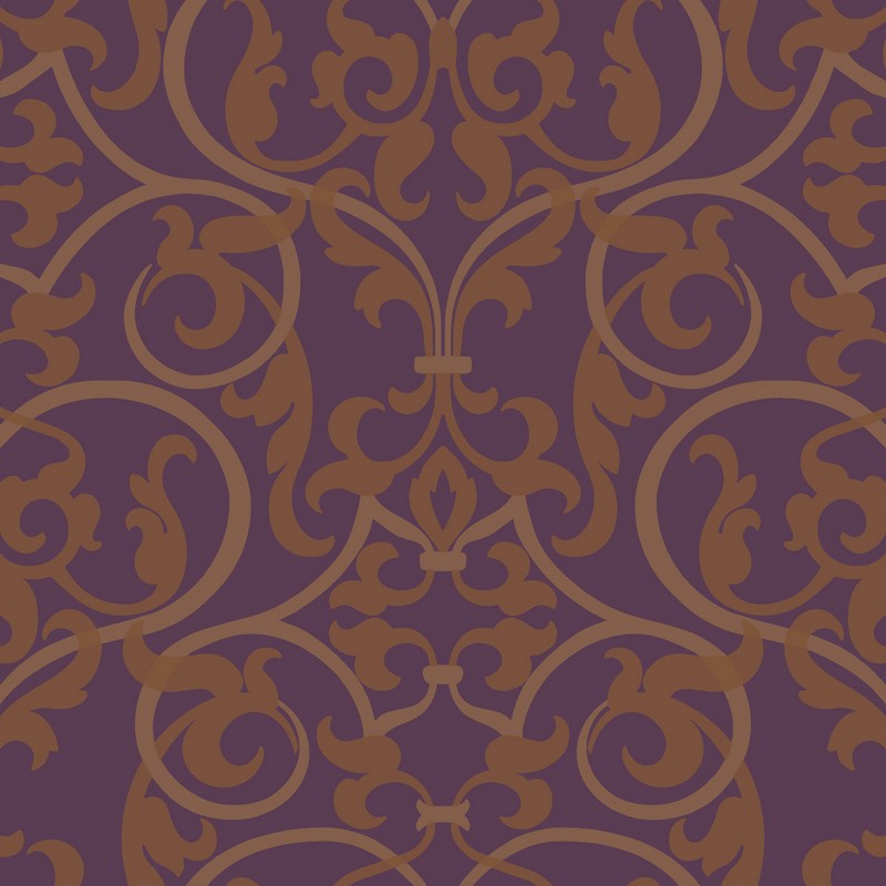 York Wallcovering Royal Scroll Wallpaper deep purple metallic gold metallic brass
