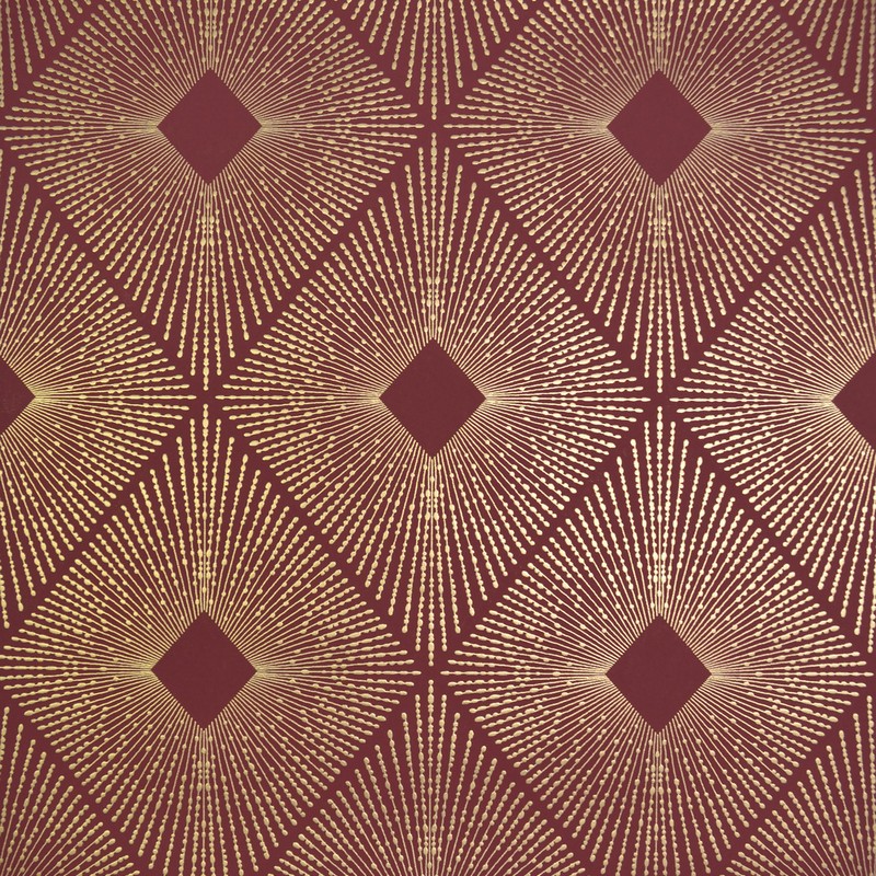 | Radiating beams of metal burst forth from a dismond shape, Antonina Vella Harlowe Wallpaper forms a shimmering aura against contrasting color. Unpasted-Washable-Wet Removable Packaged and sold as a double roll Repeat: 12.6 Match: Straight Antonina Vella Modern Metals Prop 65 Warning |
