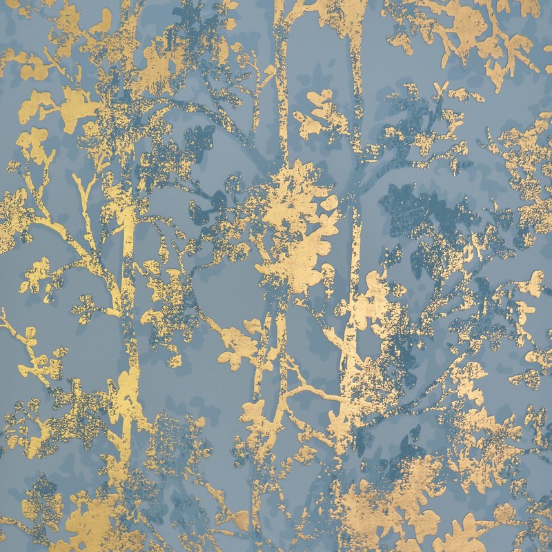 York Wallcovering Shimmering Foliage Wallpaper Blue Gold
