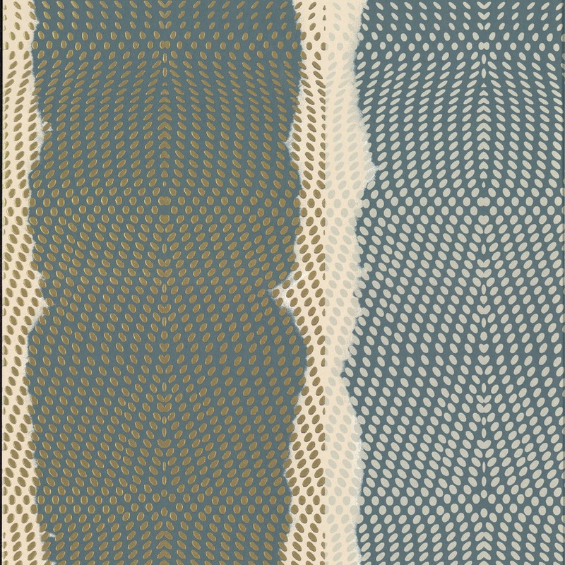 | Exotically luxurious, Indigenous Wallpaper is comprised of small metallic ovals that appear to cascade down the wall forming wide irregular stripes against contrasting colors. Unpasted - Washable - Wet Removable Packaged and sold as a double roll Repeat: 25.2 in. Match: Straight Culture Club Prop 65 Warning |