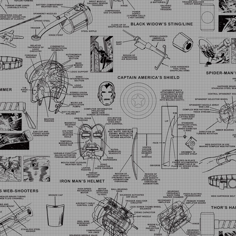 York Wallcovering Marvels Heroes Schematics Wallpaper Gray Black