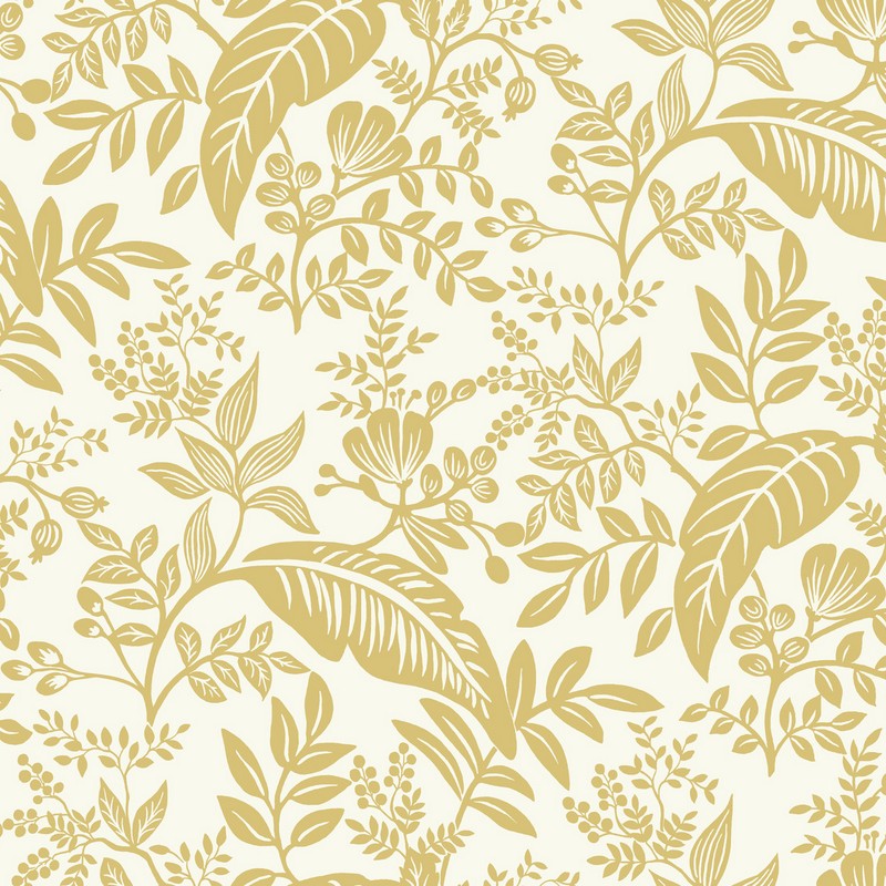 | Tropical leaves and greenery are layered to create Canopy, a lush, two color print from Rifle Paper Co. that is both modern and sophisticated. Unpasted - Washable - Strippable Packaged and sold as a double roll Repeat: 25.25 in Match: Straight Rifle Paper Co. Toile |