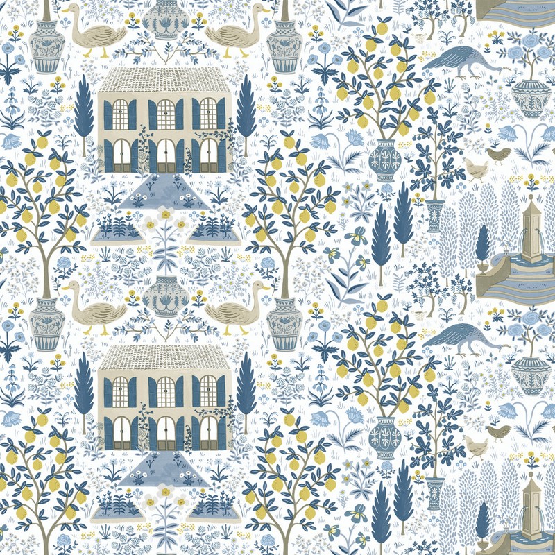 | Inspired by a property of the same name in Gascony, France and an antique pattern from York’s archives, the Rifle Paper Co. Camont print features an illustration of an 18th-century French farmhouse and the fig trees, lemon trees, animals and flowers of it Unpasted - Washable - Strippable Packaged and sold as a double roll Repeat: 20.5 in Match: Straight Rifle Paper Co. Novelty Prints Leaves And Vines Wallpaper |