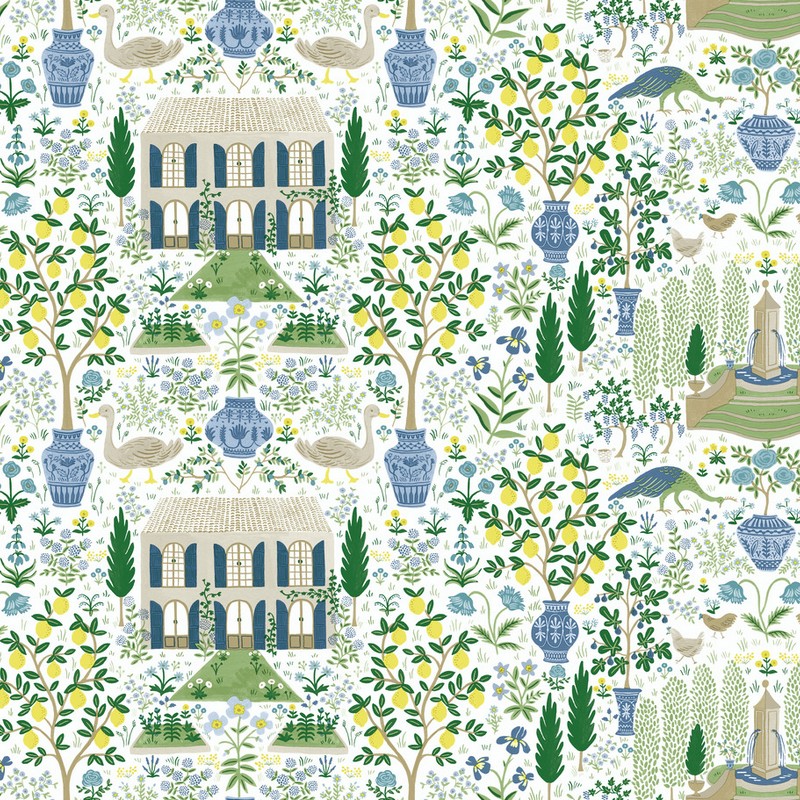 | Inspired by a property of the same name in Gascony, France and an antique pattern from York’s archives, the Rifle Paper Co. Camont print features an illustration of an 18th-century French farmhouse and the fig trees, lemon trees, animals and flowers of it Unpasted - Washable - Strippable Packaged and sold as a double roll Repeat: 20.5 in Match: Straight Rifle Paper Co. Novelty Prints Leaves And Vines Wallpaper |
