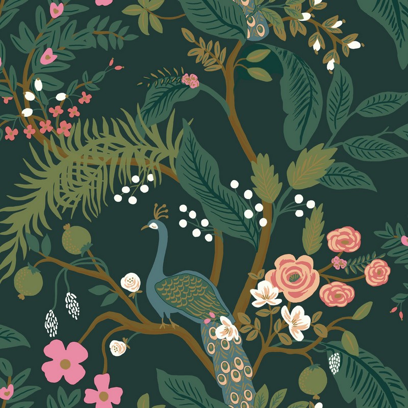 | In this modern take on traditional chinoiserie motifs by Rifle Paper Co., magnificent peacocks perch on winding branches, surrounded by bright blooming flowers and emerald leaves. Unpasted - Washable - Strippable Packaged and sold as a double roll Repeat: 25.25 in Match: Drop Rifle Paper Co. Asian And Oriental Flower Wallpaper |