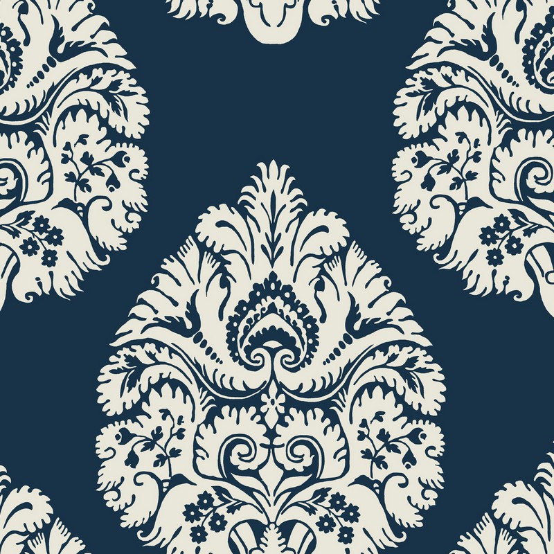 York Wallcovering Teardrop Damask Wallpaper Navy