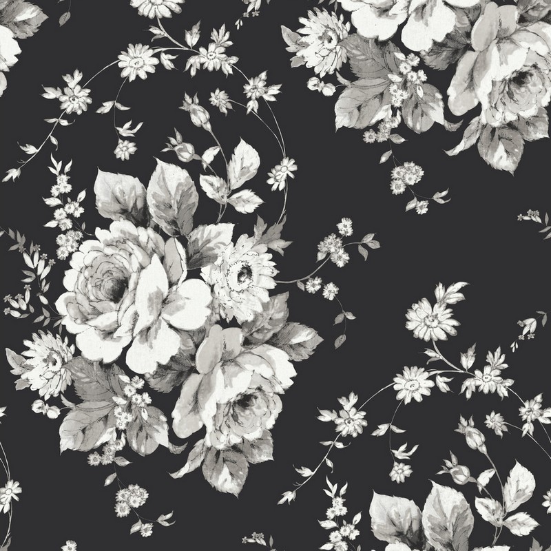 York Wallcovering Heritage Rose Wallpaper Black Gray