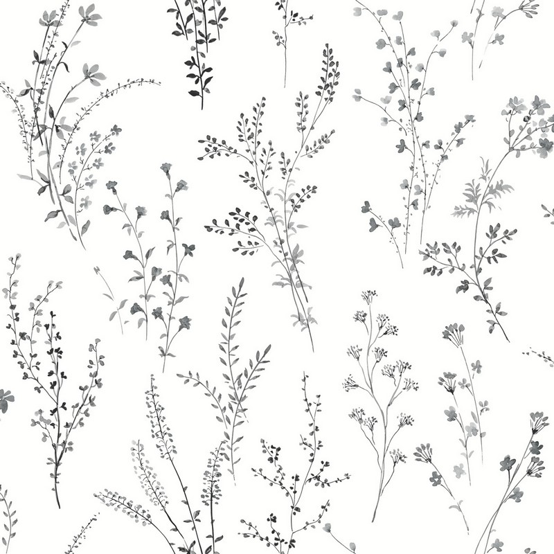York Wallcovering Wildflower Sprigs Wallpaper Black White