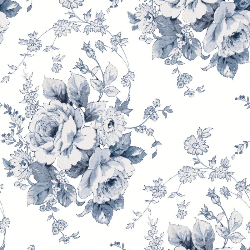 York Wallcovering Heritage Rose Wallpaper Navy/White