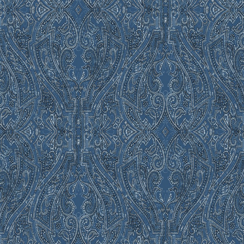 | Elegant paisley pattern Ascot Damask is inspired by luxury menswear silks and shirting. Unpasted - Washable - Strippable Packaged and sold as a double roll Repeat: 25.25 in Match: Drop Ronald Redding Traveler |