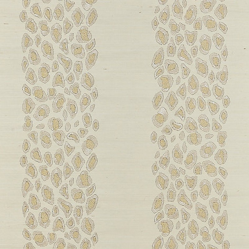 | Soiree Collection by Scalamandre brings you a one-of-a-kind wallcovering. This wallpaper is fabulous with hand-beaded cheetah spots. The woven grasscloth ground is machine embroidered and then it is transformed into a work of art as thousands of metallic seed beads add texture to the spots. The stripe layout gives it a look that is out of this world. Variations are inherent to panel. Striaght Match. Untrimmed. 8 yards per bolt. Priced by the yard and packaged by the bolt. Order in multiples of 8. |