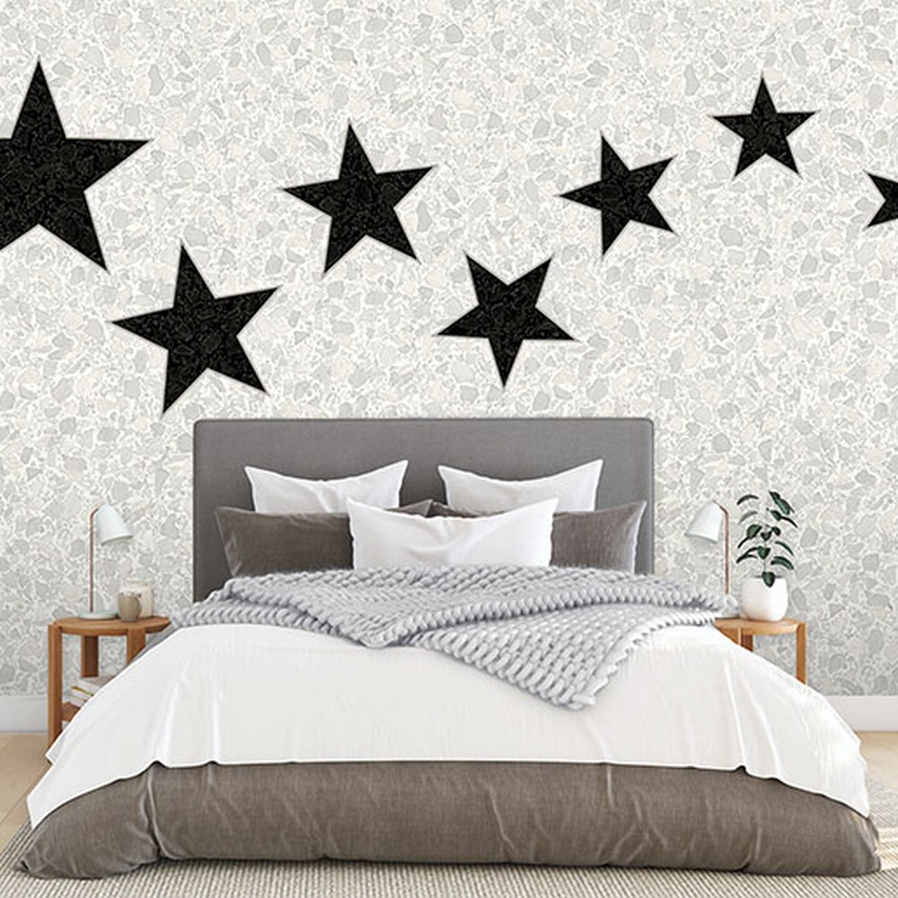Brewster Wallcovering Terrazzo Stars Black on Dove Grey Wall Mural ASTM3918