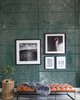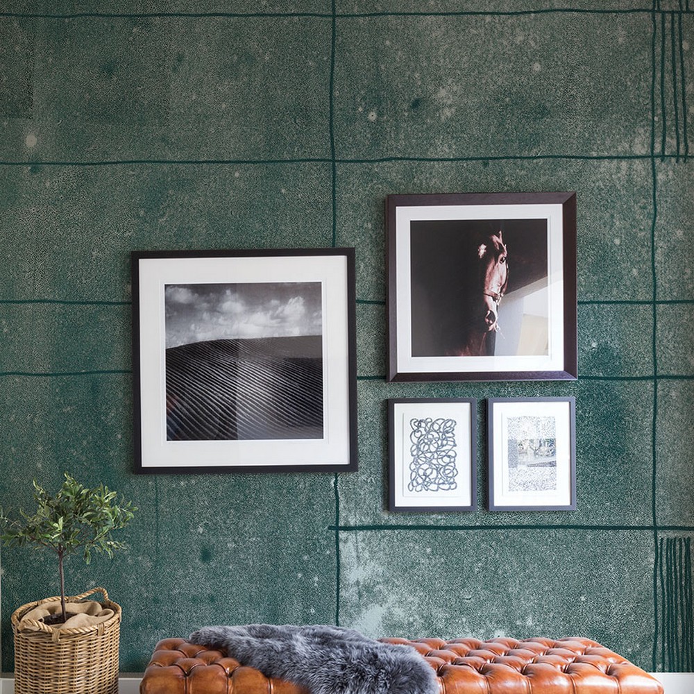 Rich forest green is dappled with white and segmented into smaller panes by wavering, hand-drawn lines for a simple and current accent