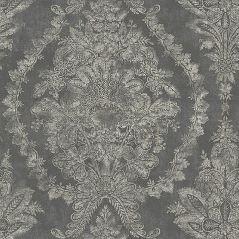 | Kravet Wallcoverings Ronald Redding damask Print Pretrimmed grey And Light Grey Wallpaper Priced and sold by the roll of 9 Yards Up the bolt |