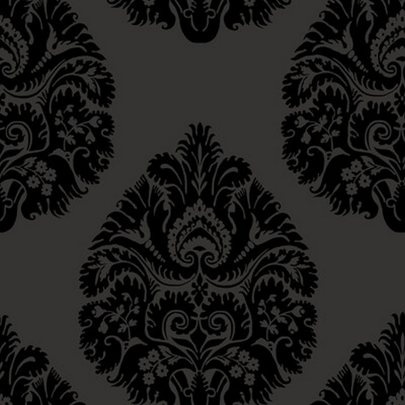 | Kravet Wallcoverings Ronald Redding damask Print Pretrimmed black And Charcoal Wallpaper Priced and sold by the roll of 9 Yards Up the bolt |