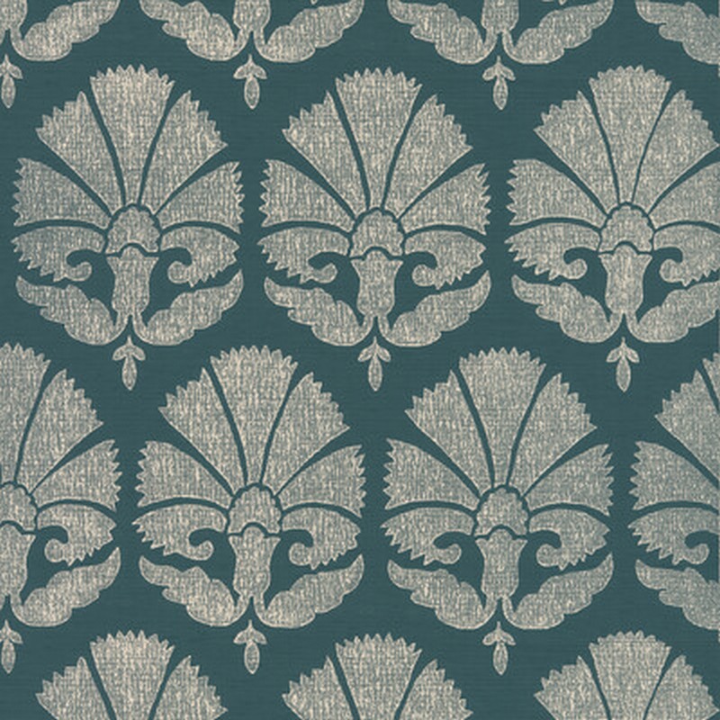 | Kravet Wallcoverings Ronald Redding damask Print Pretrimmed teal And Beige Wallpaper Priced and sold by the roll of 9 Yards Up the bolt |