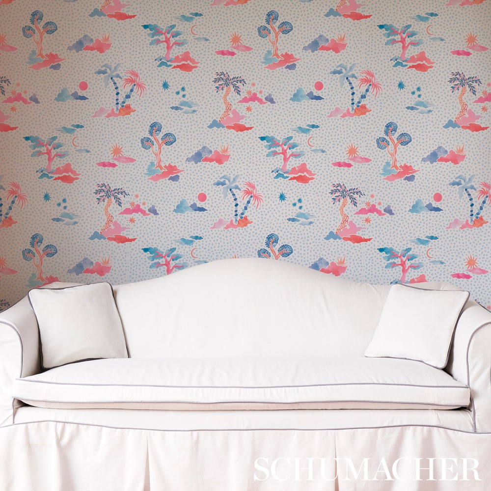 Schumacher Fabric Valletta Sky and Pink 5013520