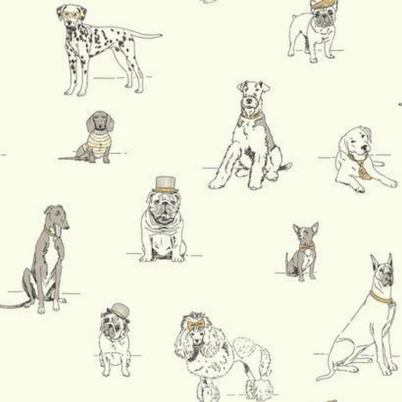 York Wallcovering Dogs Life Wallpaper silver metallic gold