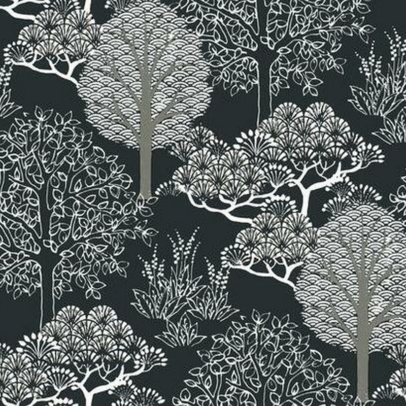 York Wallcovering Kimono Trees Wallpaper Black Metallic