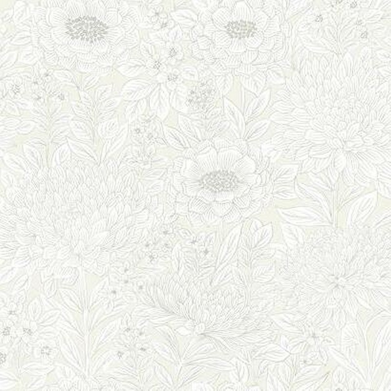 York Wallcovering Wood Block Blooms Wallpaper Cream Glint