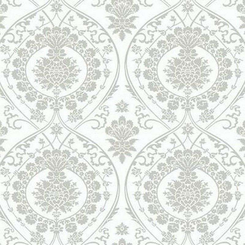 York Wallcovering Imperial Damask Wallpaper White Silver