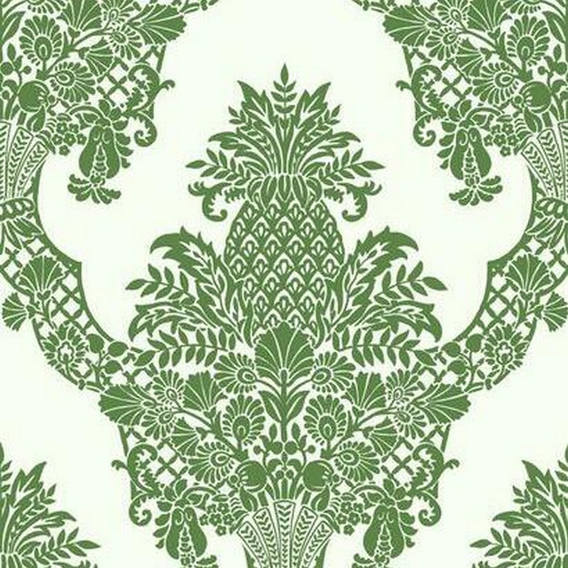 | Ultimate symbol of hospitality, the pineapple commands the center of pattern Pineapple Plantation Damask, imbued with all the design elegance associated with extravagance, and luxury. Prepasted - Washable - Strippable Packaged and sold as a double roll Repeat: 36 in. Match: Straight Damask Resource Library |