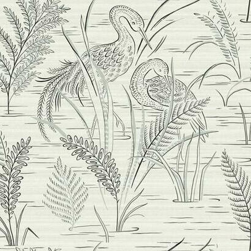 York Wallcovering Fernwater Cranes Wallpaper Black Gray