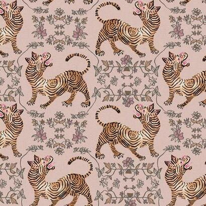 | Tibetan Tigers prowl among the wildflowers in pattern Ferrandi’s homage to the uniquely beautiful hand knotted rugs of Tibet. Prepasted - Washable - Strippable Repeat: 20.25 in. Match: Straight Lemieux et Cie Flower Wallpaper |