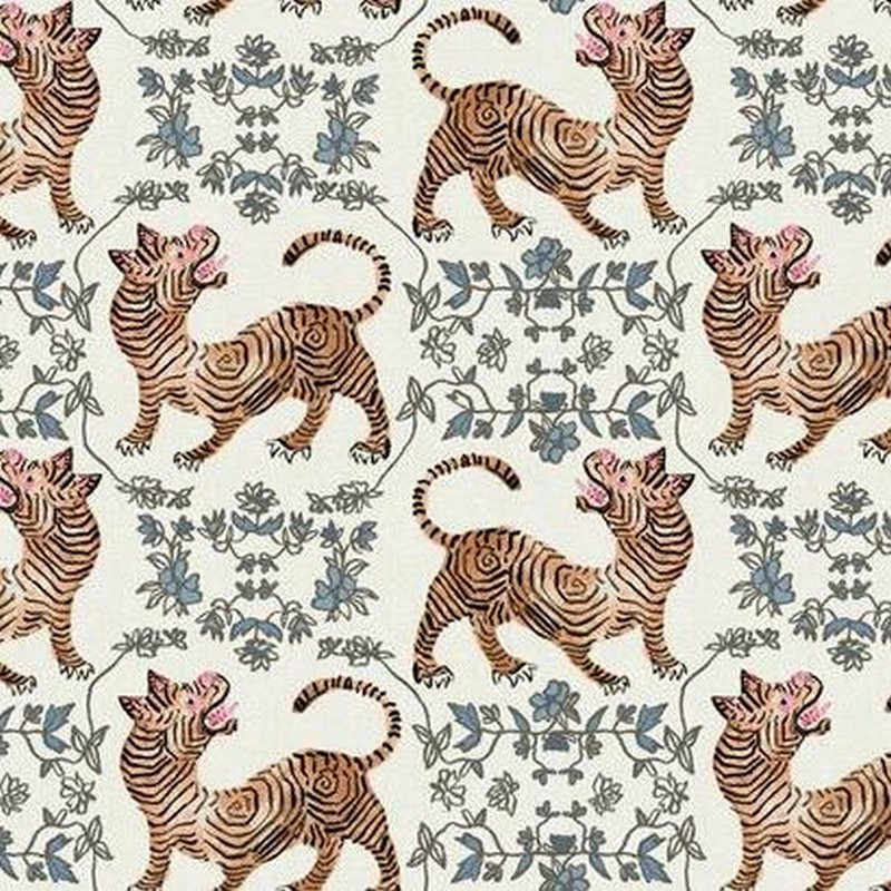| Tibetan Tigers prowl among the wildflowers in pattern Ferrandi’s homage to the uniquely beautiful hand knotted rugs of Tibet. Prepasted - Washable - Strippable Repeat: 20.25 in. Match: Straight Lemieux et Cie Flower Wallpaper |