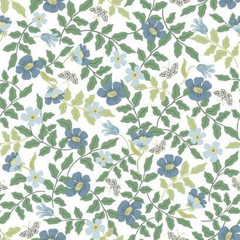York Wallcovering Primrose Peel and Stick Wallpaper Blue Off White