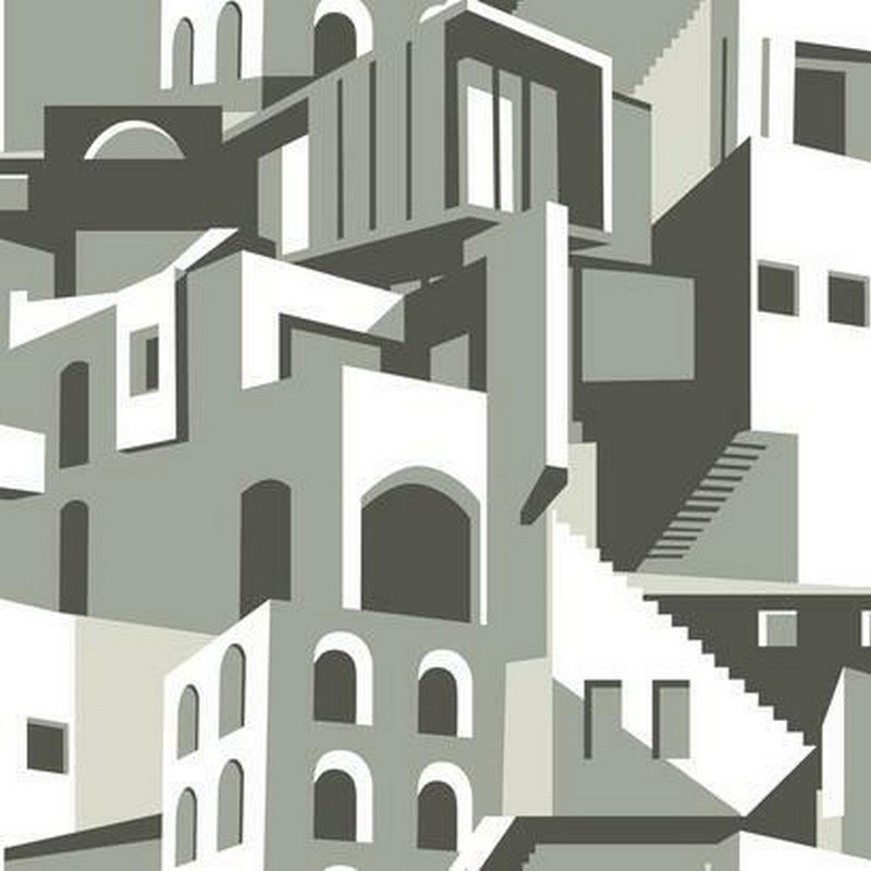 Pattern Art Architectural is a modern cityscape of shadowed buildings and arches.
