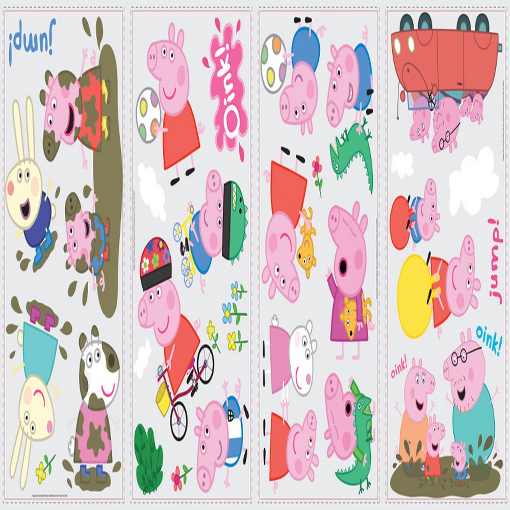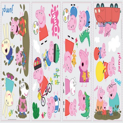 | Bring the funfilled adventures from Peppa Pig to the walls of your childes room with these Peppa Pig Wall Decals! A gre way to create your childes favorite scenes from the hit series on their walls apply these wall decals to any fl surface in minutes! Easy to remove and reposition purchase yours today!ENTERTAINMENT ONE UK LIMITED Match: Colors: multi Roll Specs : 4 sheets 10 inches X 18 inches Number of Decals : 28 |