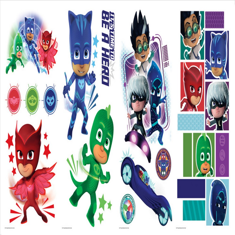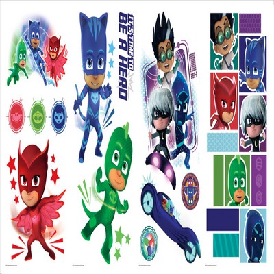 | Upde a space with RoomMates PJ Masks Peel and Stick Wall Decals. Simply peel and stick to any smooth fl surface for instant results. Remove reposition and reuse as often as needed. No sticky residue is left behind. Walls stay clean every time. ?Add personality to your walls today with RoomMates Wall Decals!HASBRO Match: Colors: red green blue Roll Specs : 4 sheets 9 inches X 17.375 inches Number of Decals : 13 |