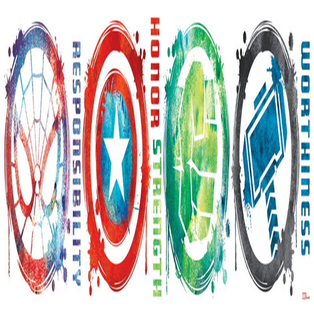 | Upde a space with RoomMates Marvel Icons Peel and Stick Wall Decals. Complete with eight wall decals its glow in the dark! Gre for any bedroom game room and more simply peel and stick to any smooth fl surface for instant results. Remove reposition and reuse as often as needed. No sticky residue is left behind. Walls stay clean every time. Add personality to your walls today with RoomMates Wall Decals!MARVEL ENTERPRISES Match: Colors: red green blue Roll Specs : 36.5 inches X 8.625 inches Number of Decals : 8 |