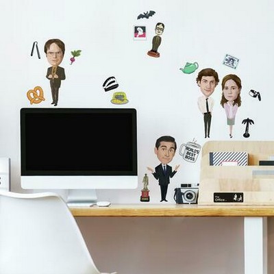 | The hugely successful sitcom The Office has brought laughter to its devoted fans for years and now you can incorpore the fun into your home with The Office peel and stick wall decals from RoomMates. Stage your home office or work stion with The Office characters including Michael Scott Dwight Schrute Jim Halpert and Pam. Consider including the giant The Office Dunder Mifflin peel and stick decals sold separely as well to complete an entire fan wall! RoomMates wall decals are an easy and affordable way to decore in minutes. Reposition or remove them effortlessly with no remaining sticky residue or damage to walls.UNIVERSAL Match: Colors: black white tan Roll Specs : 4 Sheets 9 inches x 17.375 inches Number of Decals : 18 |