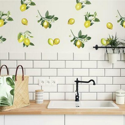| Bring the freshness of a lemon grove to your home with RoomMates Lemon peel and stick giant wall decals. The design variety of bright citrus yellow lemon clusters single lemons and lemons on branches sets a cheerful decor motif th easily coordines with both nural wood tone and clean white kitchen cupboards. The leafy green accents combine with the fruit to add an overall organic quality to any room in the home where a little fresh sparkle is desired. RoomMates wall decals are an easy and affordable way to decore in minutes. Reposition or remove them effortlessly with no remaining sticky residue or damage to walls.RM STUDIO Match: Colors: yellow green Roll Specs : 1 Sheet 36.5 inches x 17.25 inches Number of Decals : 40 |